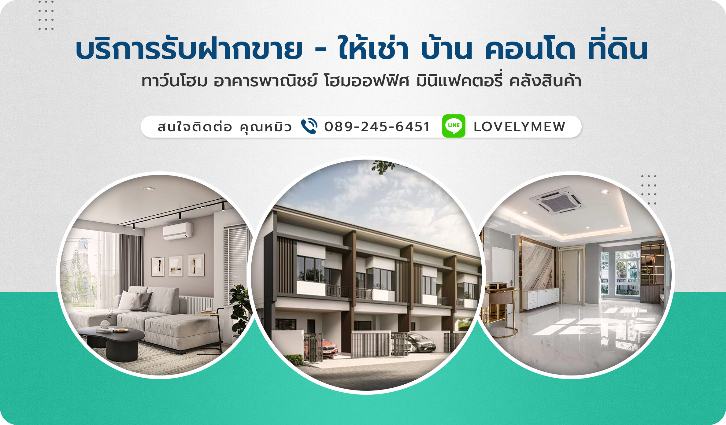 บริการรับฝากขาย - ให้เช่าบ้าน คอนโด ที่ดิน ทาว์นโฮม อาคารพาณิชย์ โฮมออฟฟิศ มินิแฟคตอรี่ คลังสินค้าสนใจติดต่อ คุณหมิว 089-245-6451 ID LINE : lovelymew
